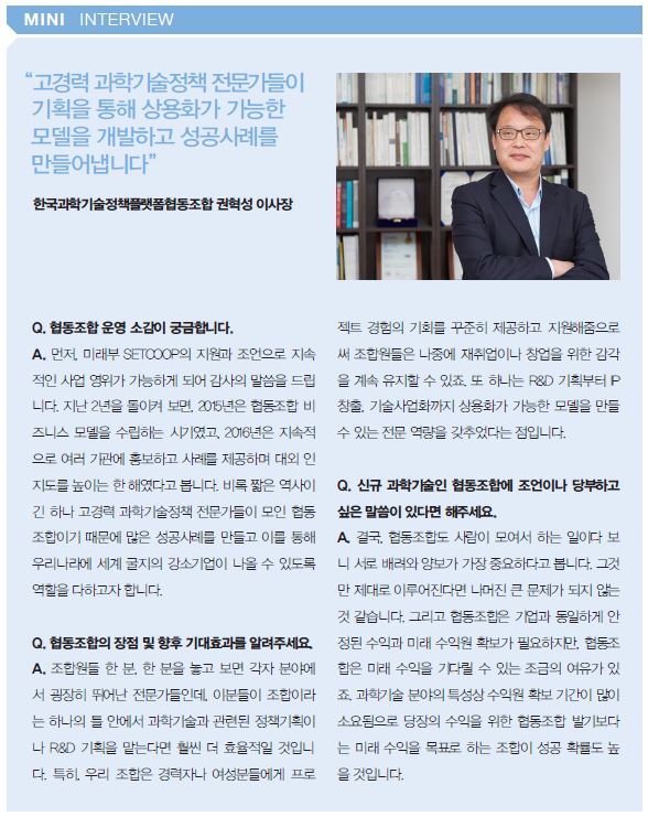 과학기술인협동조합 사례집 관련링크 http://www.setcoop.net/ [관련링크] 페이지 정보 작성일17-01-10 13:02 조회7,143회 본문 미래창조과학부 과학기술인협동조합지원센터(www.setcoop.net)의 협동조합 운영사례 및 보도자료 이전글 다음글 목록